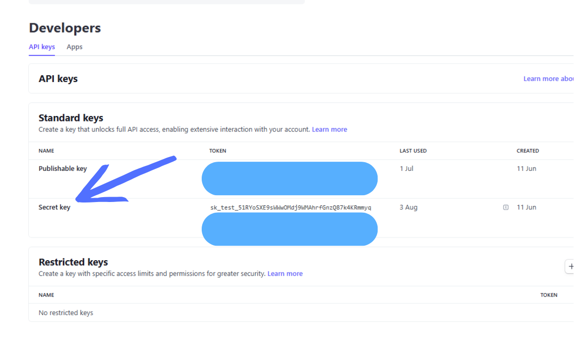 2. Key format: Look for keys starting with ‘sk_test_’