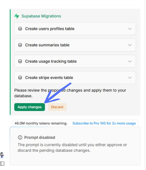 Bolt will request permission to apply "Supabase Migrations."