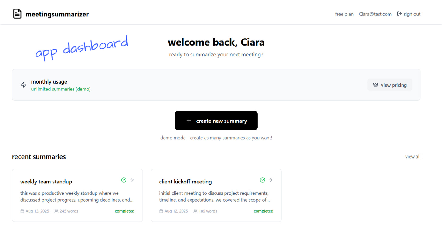 "I want to build a meeting summarizer app that transcribes audio recordings and creates AI summaries. Users should be able to log in, save their meeting transcripts, and access premium features through a subscription."