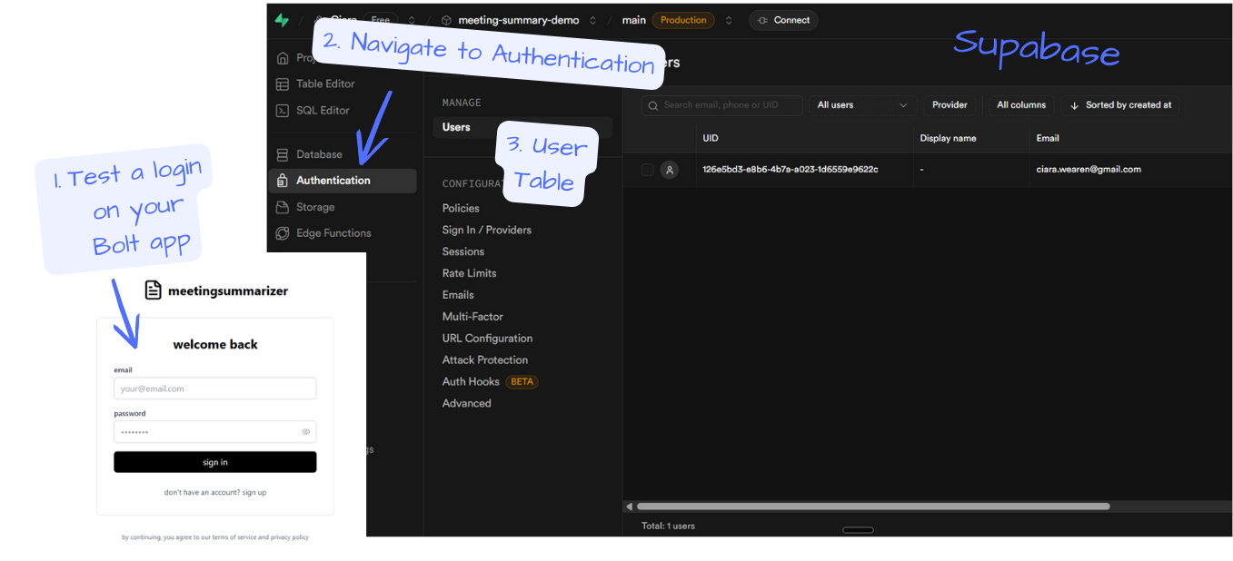 1. When prompted by Bolt, click "Connect Supabase"