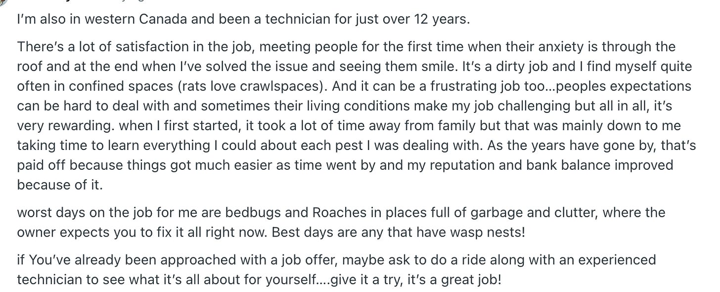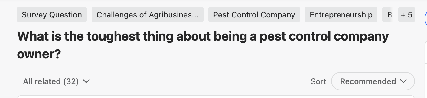 I would search for details about running a Pest Control business and read through a bunch of posts/comments and keep a document open with all of my observations. Figure out what people like and dislike about their jobs. Perhaps vibe code an agent that helps you summarize the trends. Or do it manually. I would probably quickly do both.