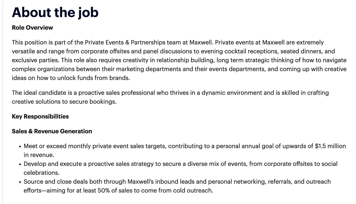 Scenario 3: You see that David Litwak from Maxwell Social is building a social club and creative studio in NYC, and that he’s looking for salespeople.