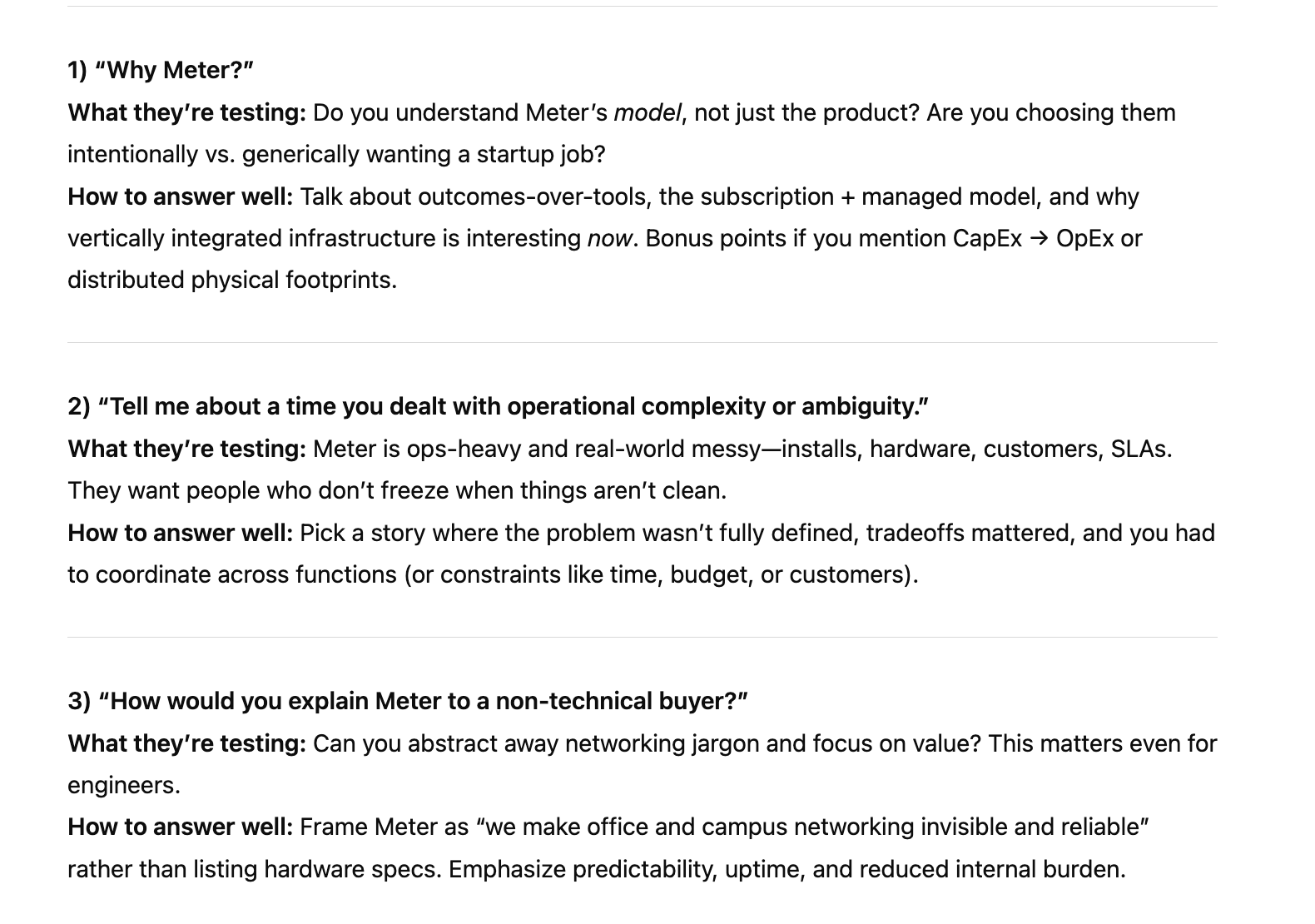 Spending even a few hours doing this can really boost the depth of your answers. All that being said, be careful about just repeating what AI says to say. I’d be skeptical of those suggestions.