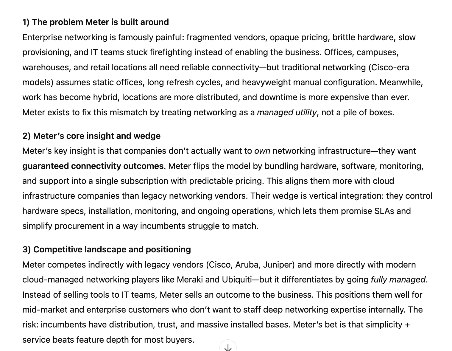 What kind of research? I would research everything I possibly could about a company and the market landscape: Who is the company? Who is the founder? What does the company do? How has it evolved over time? Who is their biggest competitor? Who is their best public comparison? What do their customers say about them on Reddit?